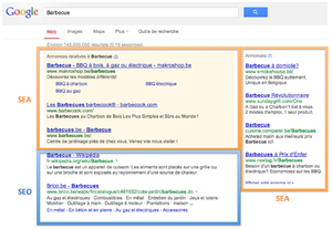 | + | [[Datei:SEO und SEA Platzierung.png|miniatur|300px|Platzierung von organischen Surgebnissen (SEO) und bezahlten Textanzeigen (SEA) in einer Suchmaschine, hier Google.]] | ||